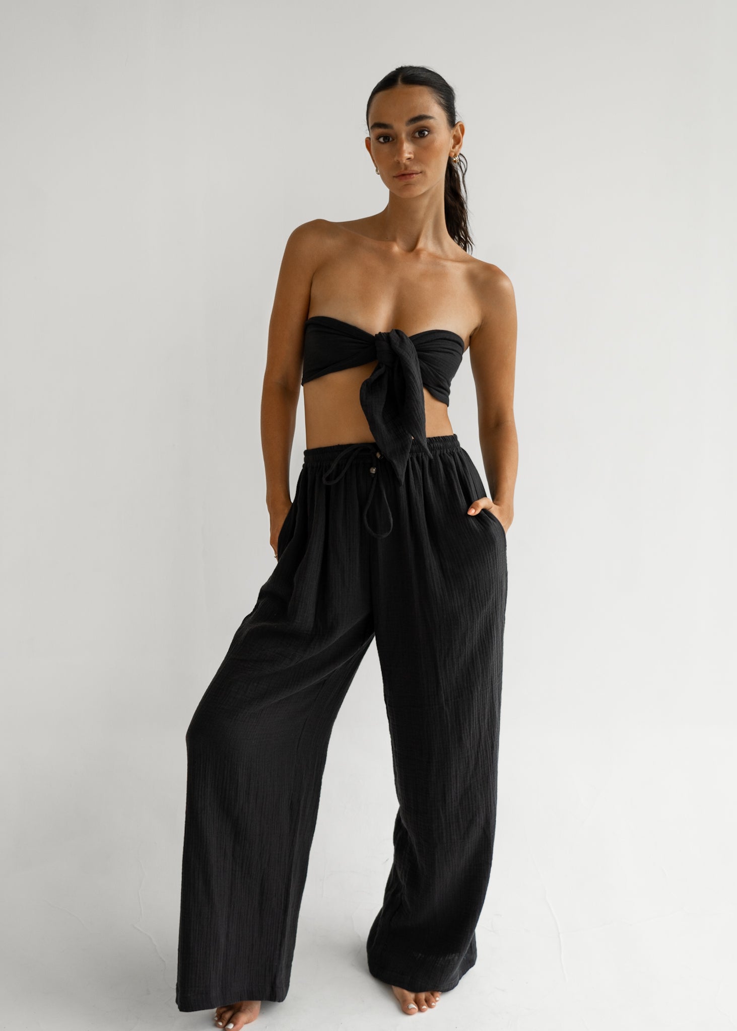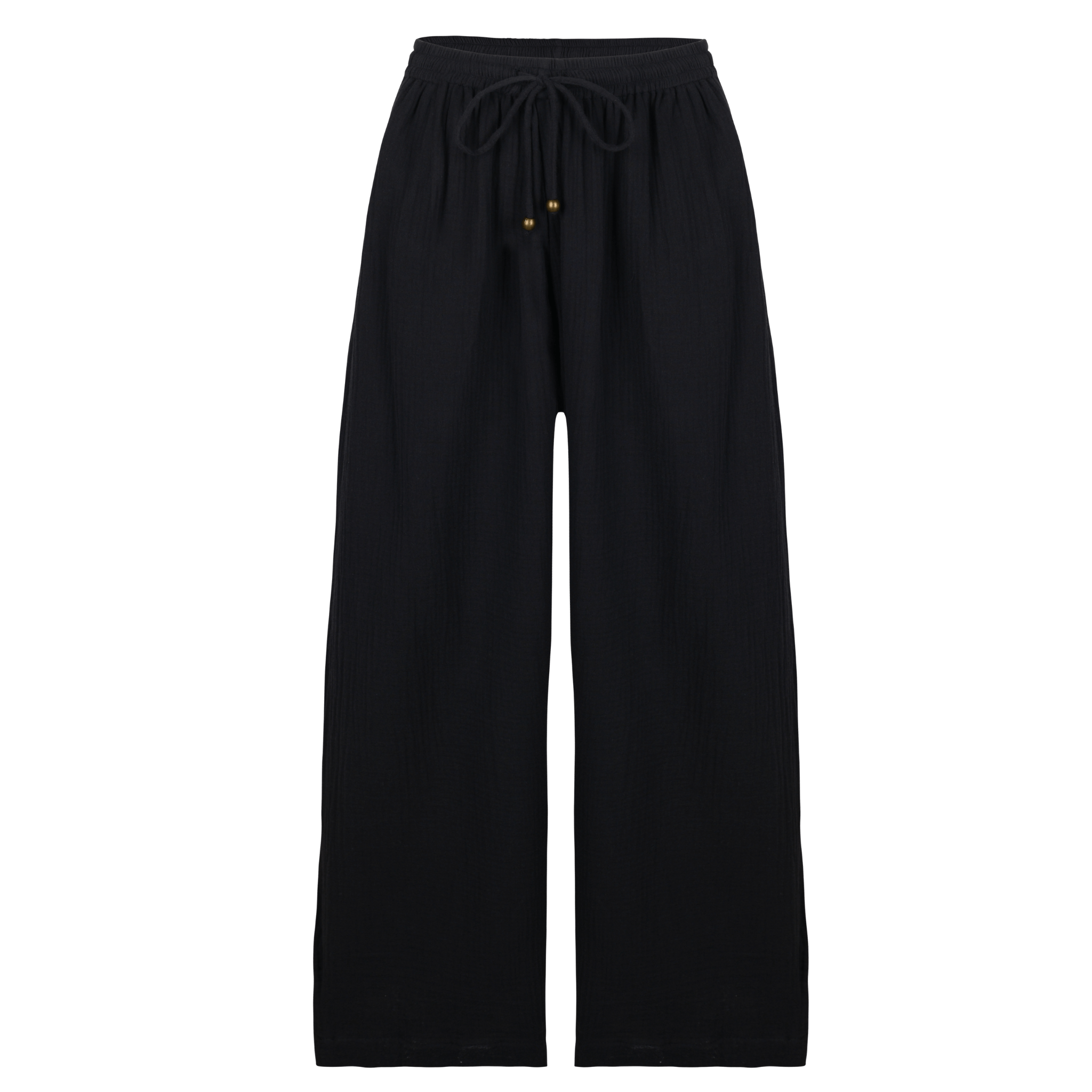 Our relaxed wide-leg pants are perfect for leisure and travel. Made from luxurious double cotton, this high-waisted resort wear style offers a relaxed fit, ideal for both lounging at home and exploring new destinations. A must-have lightweight companion for any occasion that requires both comfort and style.
